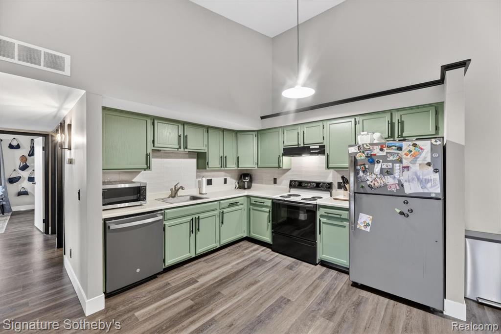 | Appliances: Dishwasher,Disposal,Free-Standing Electric Range,Free-Standing Refrigerator,Microwave,Stainless Steel Appliance(s),Washer/Dryer Stacked |